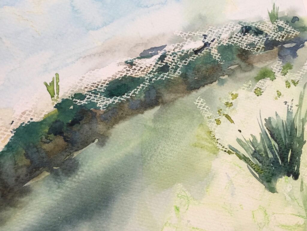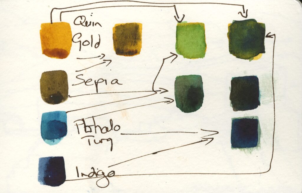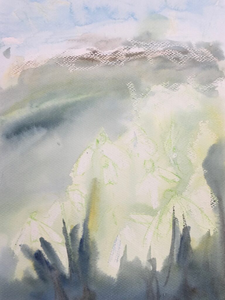 In both paintings I used the same colours – four transparent: one warm and three cool. Not a green amongst them. (Can you tell which is my favourite?)