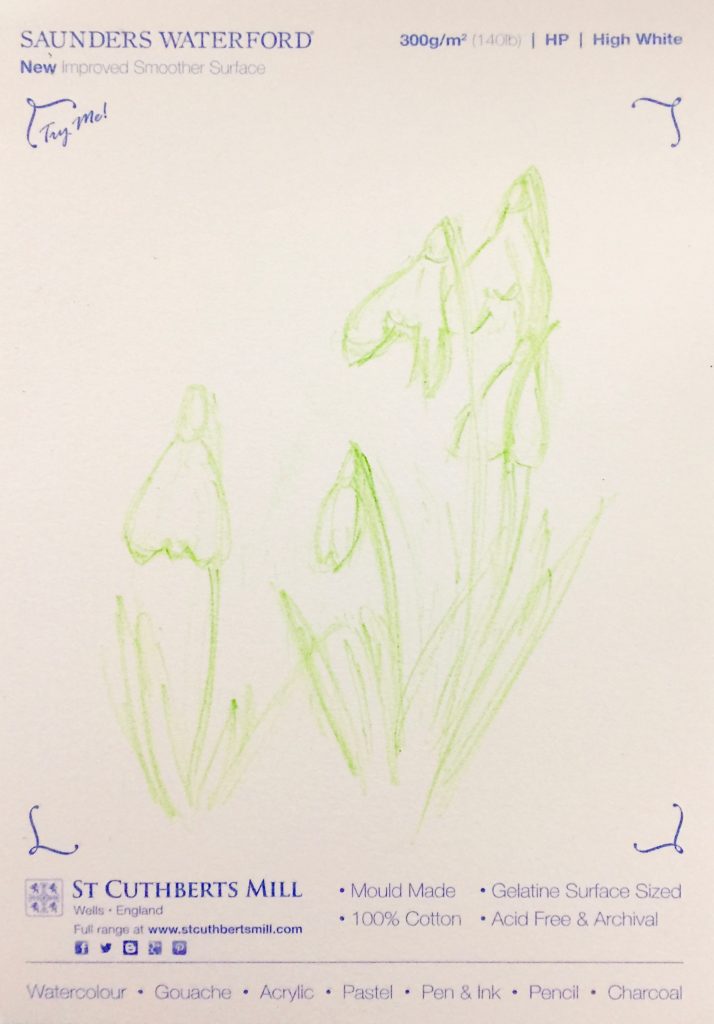 Saunders Waterford is one of my favourite papers. Its robust enough to take a pretty wet wash which is important for me as I do a lot of wet-in-wet painting.I chose High White for this little demonstration – appropriate for the crisp colour of the flowers.
