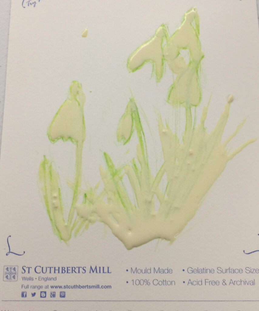 In this tutorial, I am not attempting to show you how to create the perfect snowdrop watercolour. I hope, instead, to share some tips on using two different methods of resist to retain the white of the paper, and at the same time, get splashy and creative with your paint.