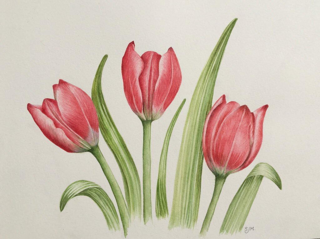 To see the final finished painting, which includes the tulip leaves please have a look at my website