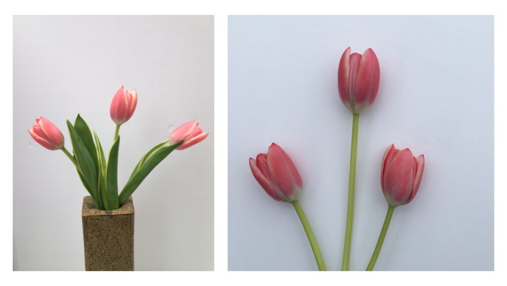 I have chosen tulips for this tutorial as they have relatively simple shapes. I have removed the leaves to simplify the subject even further.