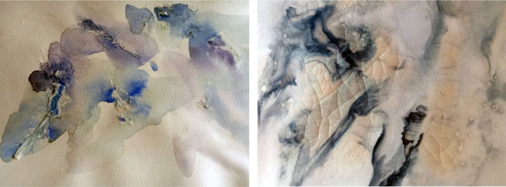 Try to disturb and distort the surface and watch what your paint does, eg torn paper edges will absorb the pigment and make darker lines. Add glues, wax resist or tissue to the surface and see the change it makes to your pigment on the paper.