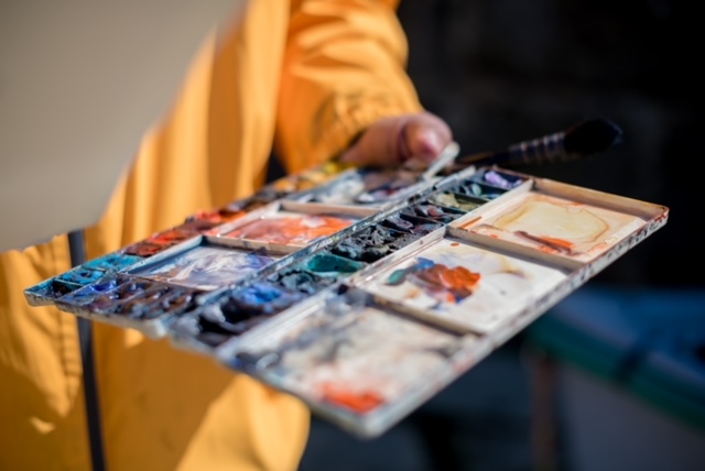 Be quick when painting watercolour outside. Use a water spray to keep your painting moist.